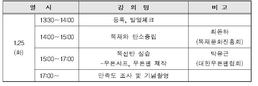 1. 연수명 : 교육분야 목공기술연수(1차실기)