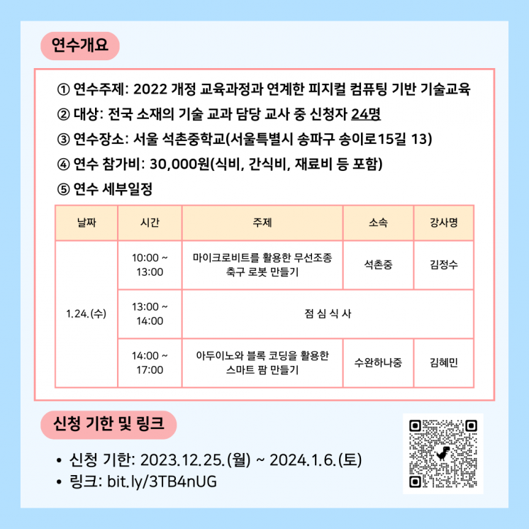 2024 전국기술공학교사모임 겨울연수(자율) 신청 안내 댓글1개