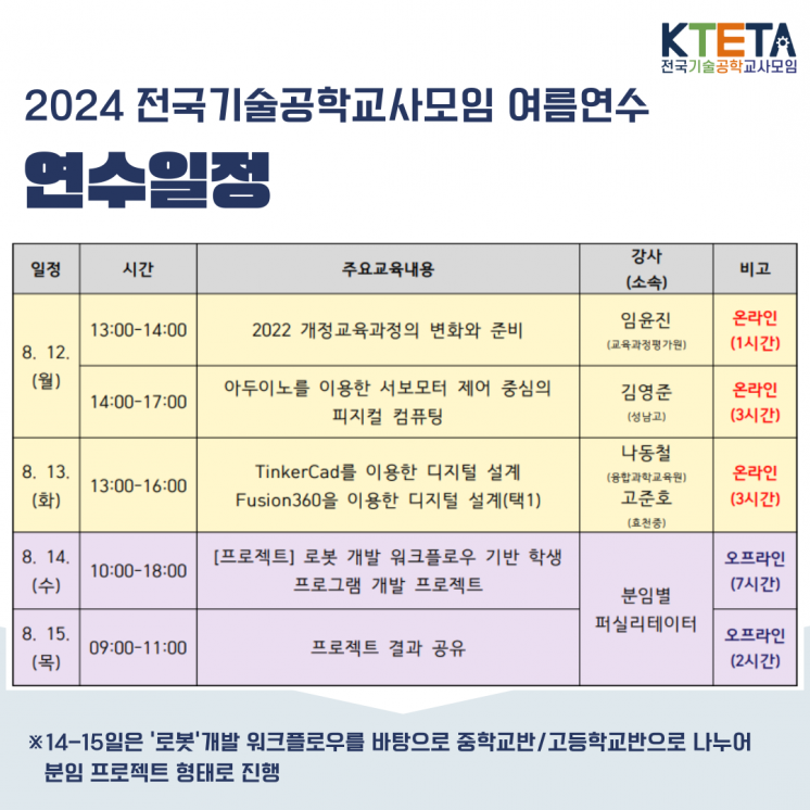 2024 전국기술공학교사모임 여름연수(자율) 신청 안내